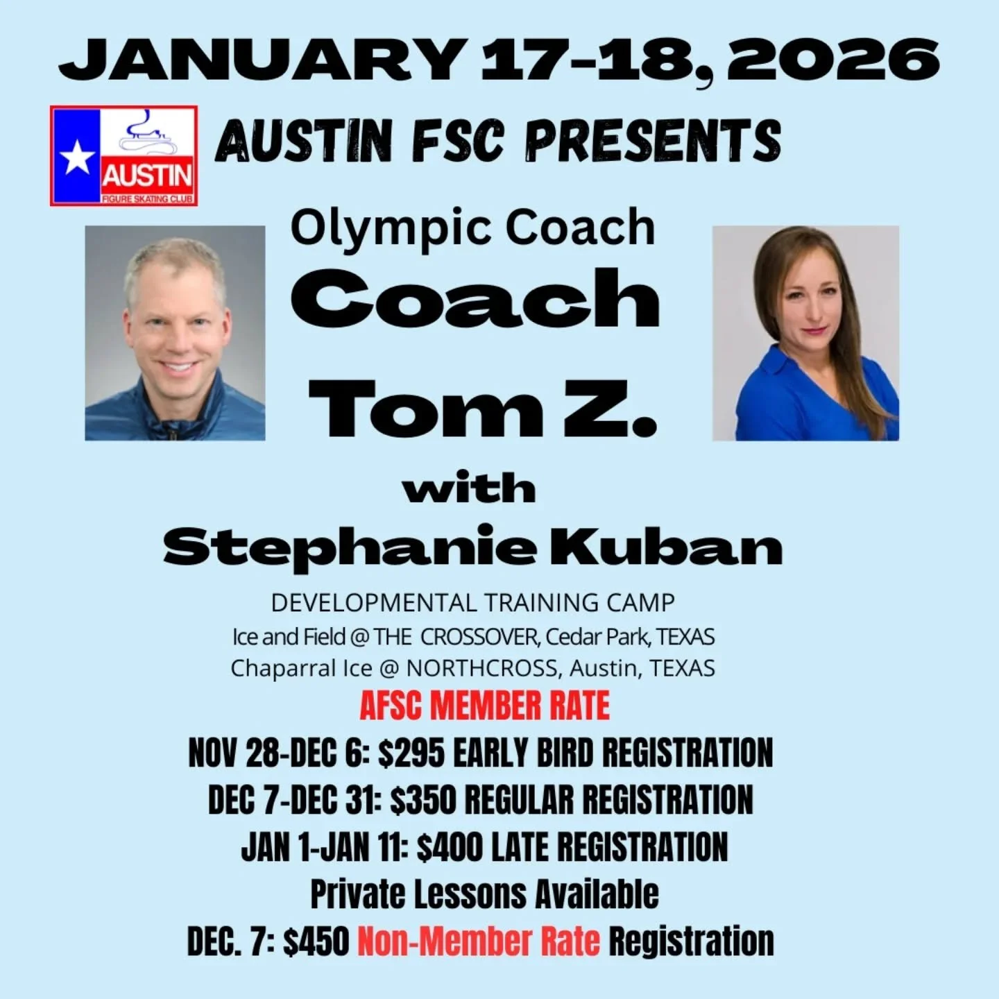 Skating Seminar with Tom Z. January 17-18, 2026, early registration opening; Friday Nov. 28-Dec. 6